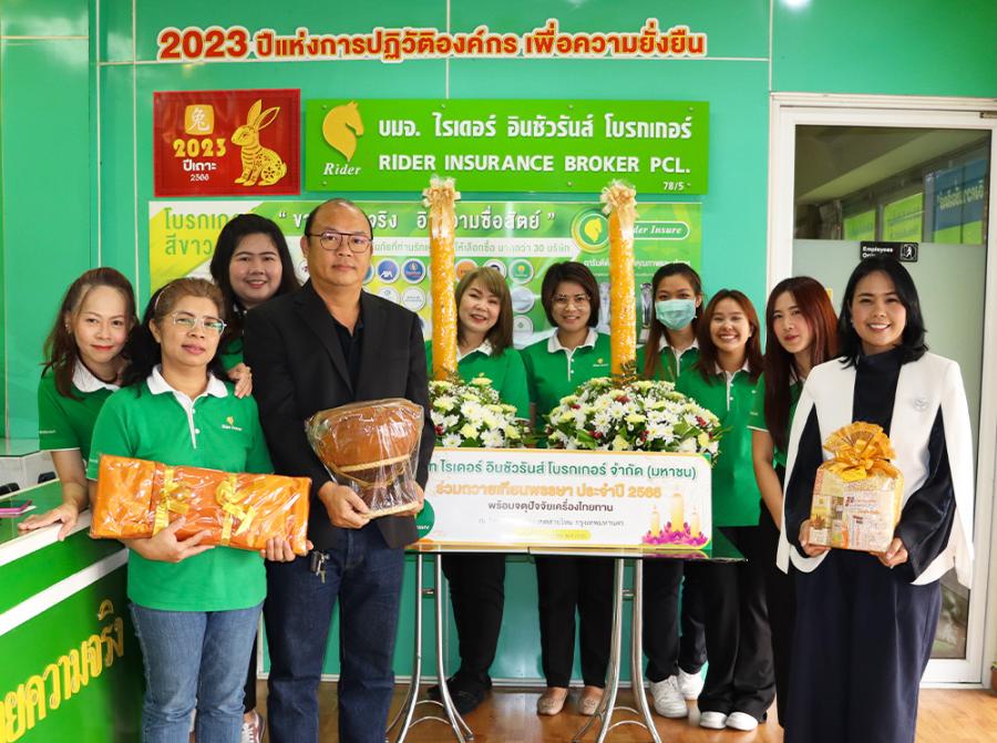 บริษัท ไรเดอร์ อินชัวรันส์ โบรกเกอร์ จำกัด(มหาชน) นำโดย คุณพร้อมพร จินดาวงค์ เนตรหาญ รองประธานเจ้าหน้าที่บริหาร (คนที่ 6 จากซ้าย) คุณอนุชิต กูรมาภิรักษ์ ประธานเจ้าหน้าที่ด้านเทคโนโลยีสารสนเทศ (คนที่ 3 จากขวา) พร้อมพนักงาน