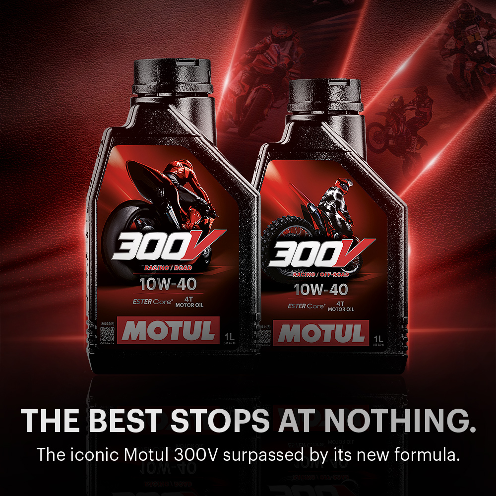 โมตุลภูมิใจที่ได้ก้าวข้ามมาตรฐานด้านประสิทธิภาพด้วยการเปิดตัวน้ำมันเครื่องสำหรับรถจักรยานยนต์ 4 จังหวะ (4T) อย่าง MOTUL 300V ที่ได้รับการพัฒนาจากสูตรเดิม อันเป็นเอกลักษณ์และเป็นที่รู้จักในแวดวง Motorsport ในฐานะผู้เชี่ยวชาญชั้นนำระดับโลกด้านน้ำมันหล่อลื่นสมรรถนะสูง โมตุลมีความมุ่งมั่นที่จะผลิตน้ำมันหล่อลื่น ให้เหนือกว่ามาตรฐานเดิมทั้งทางด้านประสิทธิภาพและความน่าเชื่อถือ จึงถือได้ว่าน้ำมันเครื่อง 300V ที่ได้รับการพัฒนาสูตรใหม่นั้น ให้กำลังและสมรรถนะที่เพิ่มขึ้น โดยไม่ส่งผลกระทบต่ออายุการใช้งานของเครื่องยนต์ ซึ่งตอบโจทย์การใช้งานสำหรับคนที่ชื่นชอบ Motorsport และคนรักรถจักรยานยนต์ที่กำลังมองหาการดูแลเครื่องยนต์ที่เหนือชั้นขึ้น