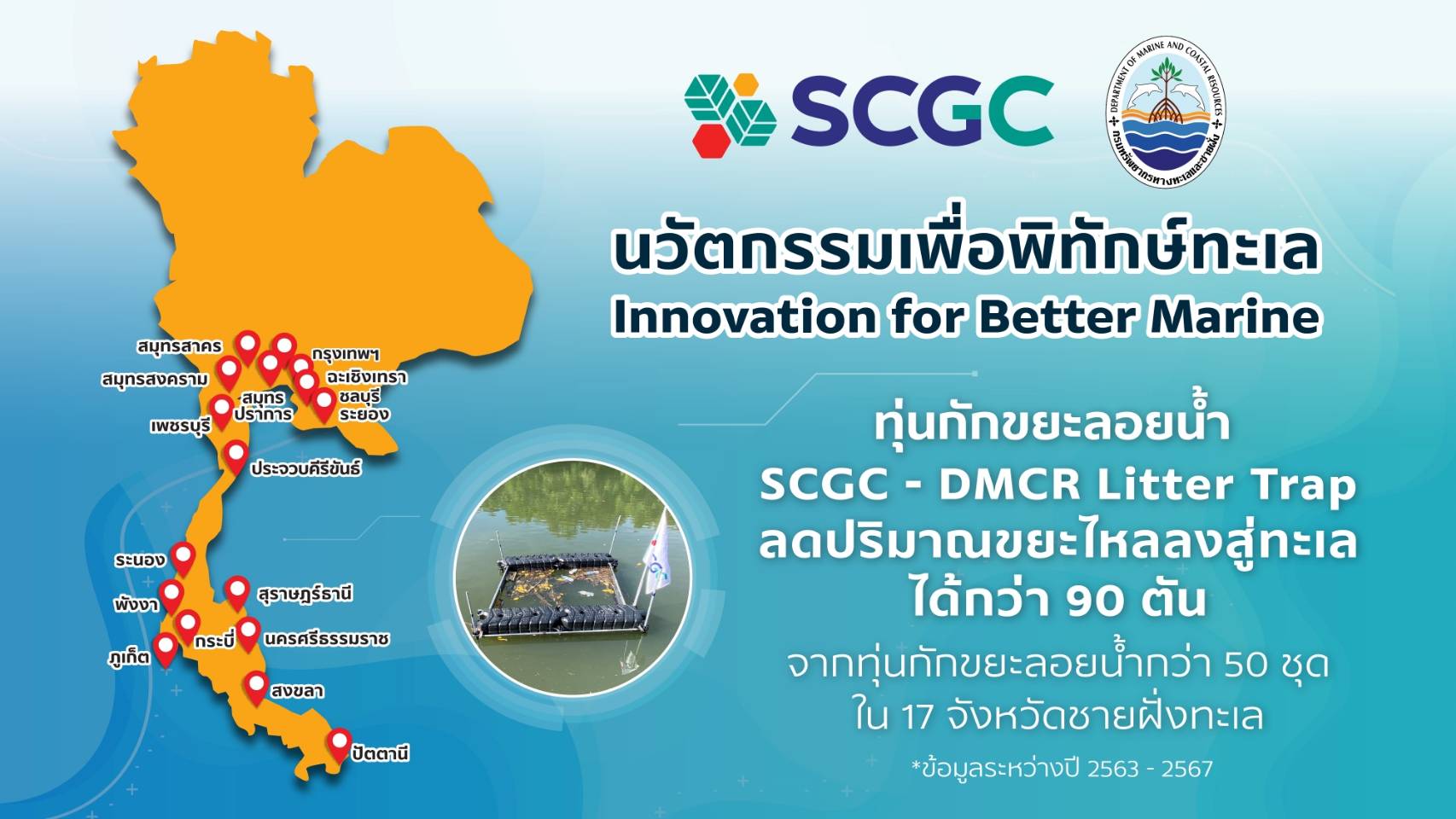 โดยระหว่างปี 2563 จนถึงปี 2567 (ข้อมูล ณ ธันวาคม 2567) SCGC ได้ส่งมอบทุ่นกักขยะฯ ไปแล้วกว่า 50 ชุด ติดตั้งใน 17 จังหวัด สามารถลดปริมาณขยะบกไหลลงสู่ทะเลได้กว่า 90 ตัน ซึ่งมีส่วนช่วยป้องกันและเพิ่มความหลากหลายทางชีวภาพให้กับระบบนิเวศทางทะเล