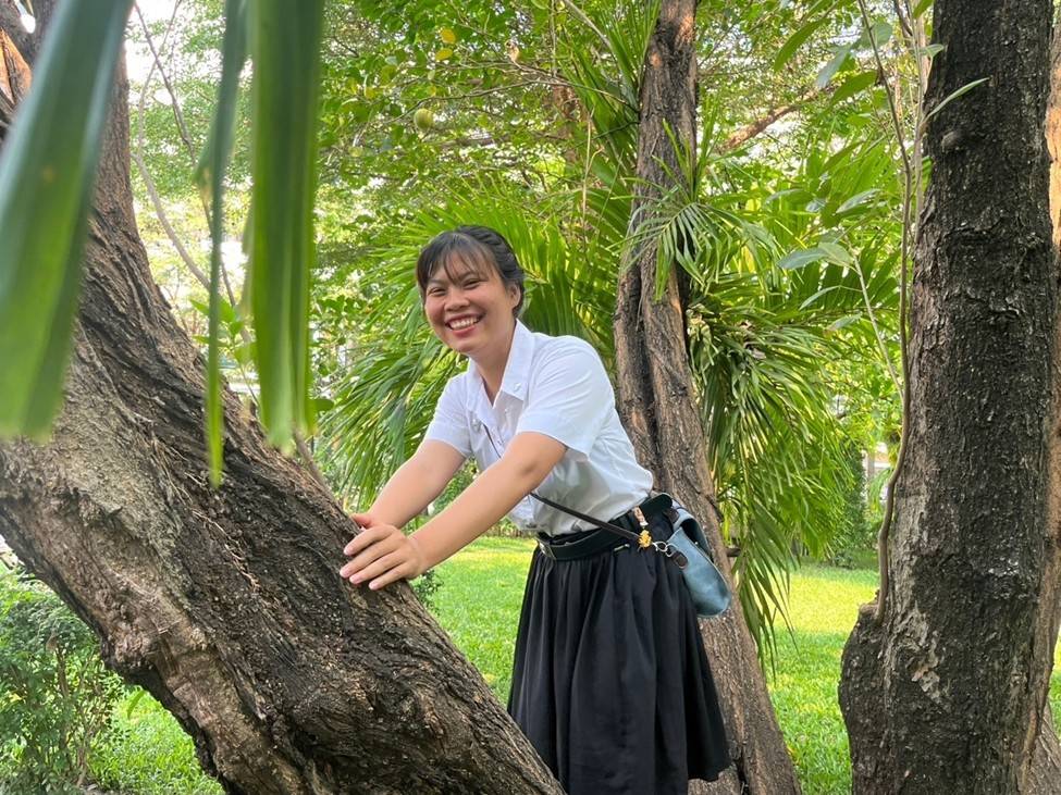 “นอกจากนี้มหาวิทยาลัยยังมีความทันสมัยและร่มรื่น ชอบสถานที่ในมหาวิทยาลัยหลายแห่งมาก ๆ ได้แก่ ห้องสมุดชั้น 7 เป็นสถานที่ที่ชอบมากที่สุดเป็นอันดับ 1 เพราะเป็นที่ที่เงียบที่สุดและมีห้องให้สำหรับพักผ่อน เวลาที่อ่านหนังสือเหลือทำงานเหนื่อยๆ สามารถพักผ่อนสายตาได้ที่ห้องสมุดได้เลย บริเวณสะพานแดง เพราะมีธรรมชาติล้อมรอบ มีบ่อปลาคราฟ เวลาเครียดๆ สามารถไปนั่งดูฝูงปลาที่ว่ายน้ำอย่างอิสระได้ ทำให้ผ่อนคลายมากขึ้น อยากจะบอกน้องๆ หรือคนที่กำลังลังเลอยู่ว่า ไม่ต้องกลัวว่าจะเลือกผิด เพราะทุกเส้นทางสามารถปรับเปลี่ยนได้ตลอด