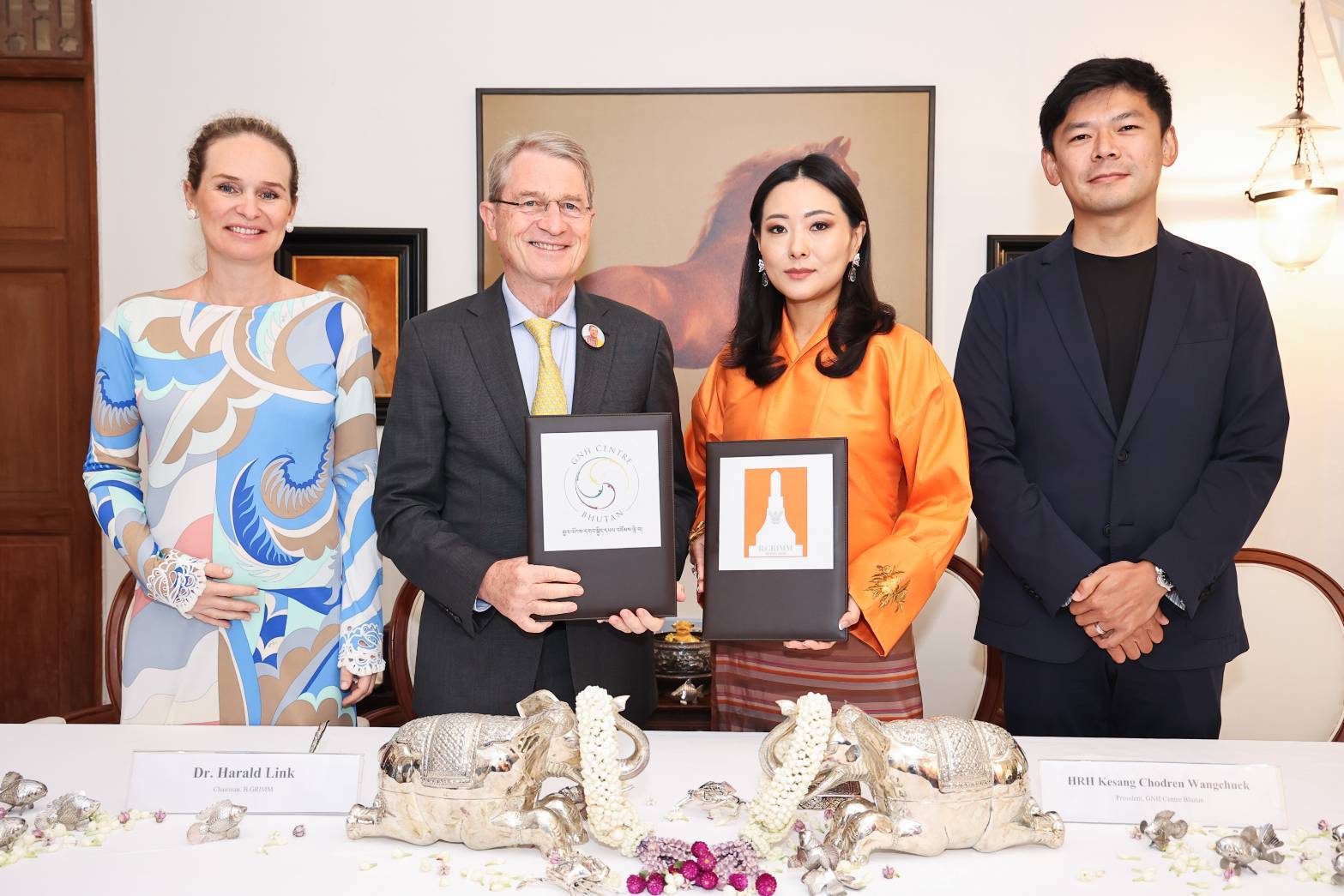 เจ้าหญิงเคเซง โชเดน วังชุก แห่งศูนย์ความสุขมวลรวมประชาชาติ ประเทศภูฏาน (Gross National Happiness Centre Bhutan) ร่วมกับ ดร. ฮาราลด์ ลิงค์ ประธาน บี.กริม และคุณคาโรลีน ลิงค์ ประธานกรรมการ บริษัท บี.กริม จอยน์ เว็นเจอร์ โฮลดิ้ง จำกัด ร่วมลงนามบันทึกข้อตกลง (MOU) ต่อยอดความร่วมมือเพื่อส่งเสริมและสะท้อนถึงความมุ่งมั่นในการนำหลักการของความสุขมวลรวมประชาชาติมาปรับใช้ในวัฒนธรรมองค์กร เสริมสร้างความเป็นอยู่ที่ดี และสนับสนุนการมีส่วนร่วมที่มีคุณค่า