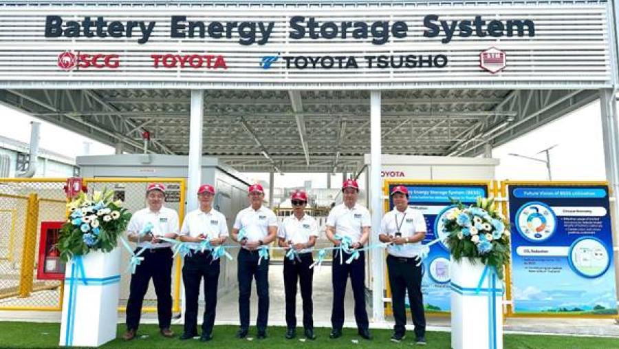 เอสซีจี ร่วมกับ Toyota Motor Corporation (TMC) และ Toyota Motor Asia (TMA) พร้อมด้วย Toyota Tsusho Corporation (TTC) และบริษัทพันธมิตร ประกาศความร่วมมือครั้งสำคัญ เปิดตัวโครงการทดลองระบบกักเก็บพลังงานด้วยแบตเตอรี่ (Battery Energy Storage System: BESS) จากรถยนต์ไฟฟ้า ณ บริษัทสยามโตโยต้าอุตสาหกรรม จำกัด (STM) นิคมอุตสาหกรรมอมตะซิตี้ จังหวัดชลบุรี