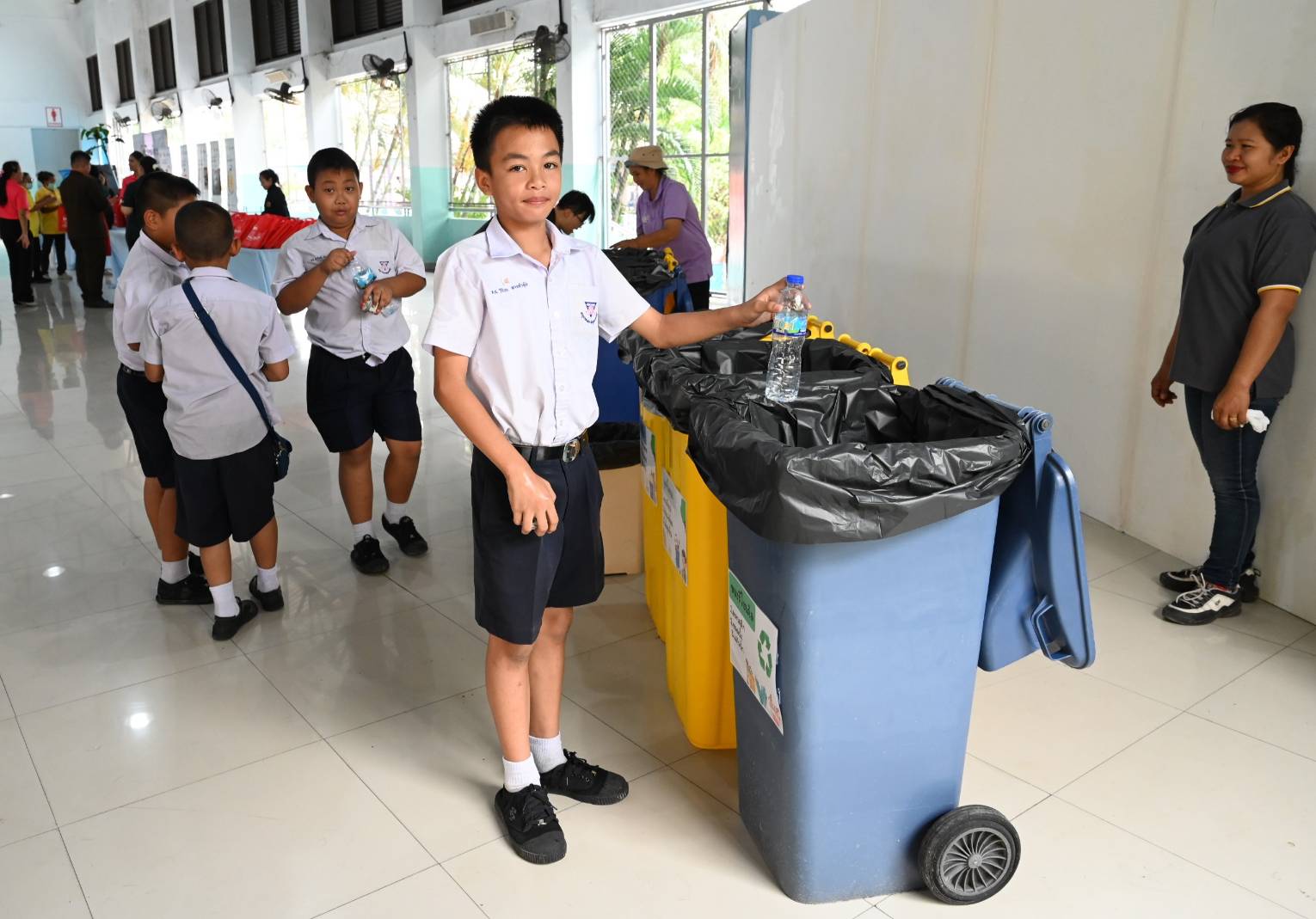 โดยเริ่มต้นที่โรงเรียนเกาะสีชัง และขยายผลสู่โรงเรียนอื่น ๆ ในปี 2568 นอกจากนี้ ยังมี โครงการ “กุ๊กขอเก็บ” ซึ่งต่อยอดจากโครงการ “คัดแยกขยะสัญจร” โดยบริษัทฯ ได้จัดทำตู้เก็บขวด PET และกระป๋องอลูมิเนียม เพื่อส่งเสริมการการคัดแยกขยะ และเพิ่มมูลค่า