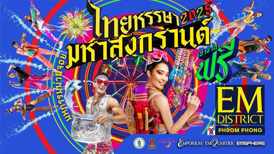 เอ็ม ดิสทริค โดยศูนย์การค้าเอ็มโพเรียม เอ็มควอเทียร์ และเอ็มสเฟียร์ จับมือภาครัฐและภาคีเครือข่ายภาคเอกชน ร่วมสืบสานประเพณีสงกรานต์ไทย เนรมิตแลนมาร์กฉลองสงกรานต์ สุดยิ่งใหญ่ครั้งแรกใจกลางสุขุมวิทกับงาน “เอ็ม ดิสทริค ไทยหรรษา มหาสงกรานต์ 2025” เพลิดเพลินกับหลากหลายกิจกรรมในแบบสไตล์ไทย ทั้งการเล่นน้ำสงกรานต์กลางสวน การแสดงศิลปะวัฒนธรรมไทย เกมส์งานวัดแสนสนุก รวมถึงการแสดงจากหนูน้อยเทพีสงกรานต์ ในวันที่ 12 - 14 เมษายน 2568 ณ อุทยาน เบญจสิริ (BTS พร้อมพงษ์) และ EM YARD ชั้น G เอ็มสเฟียร์
