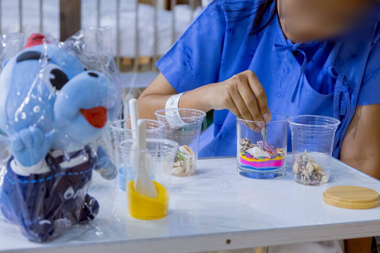 ซึ่งได้มาจัดกิจกรรมสนุกๆ ทั้ง เพ้นท์กระถางต้นไม้ เพ้นท์ปูนปั้น ตกแต่งเทียนเจล ภายใต้ชื่อโครงการ Volunteer : Smiles for little heroes รวมถึงมอบตุ๊กตา ของเล่น และสิ่งของต่างๆ ให้กับผู้ป่วยเด็ก ณ ห้องเรียนเด็กเจ็บป่วยเรื้อรัง ตึก สก. ชั้น 12 โรงพยาบาลจุฬาลงกรณ์ สภากาชาดไทย