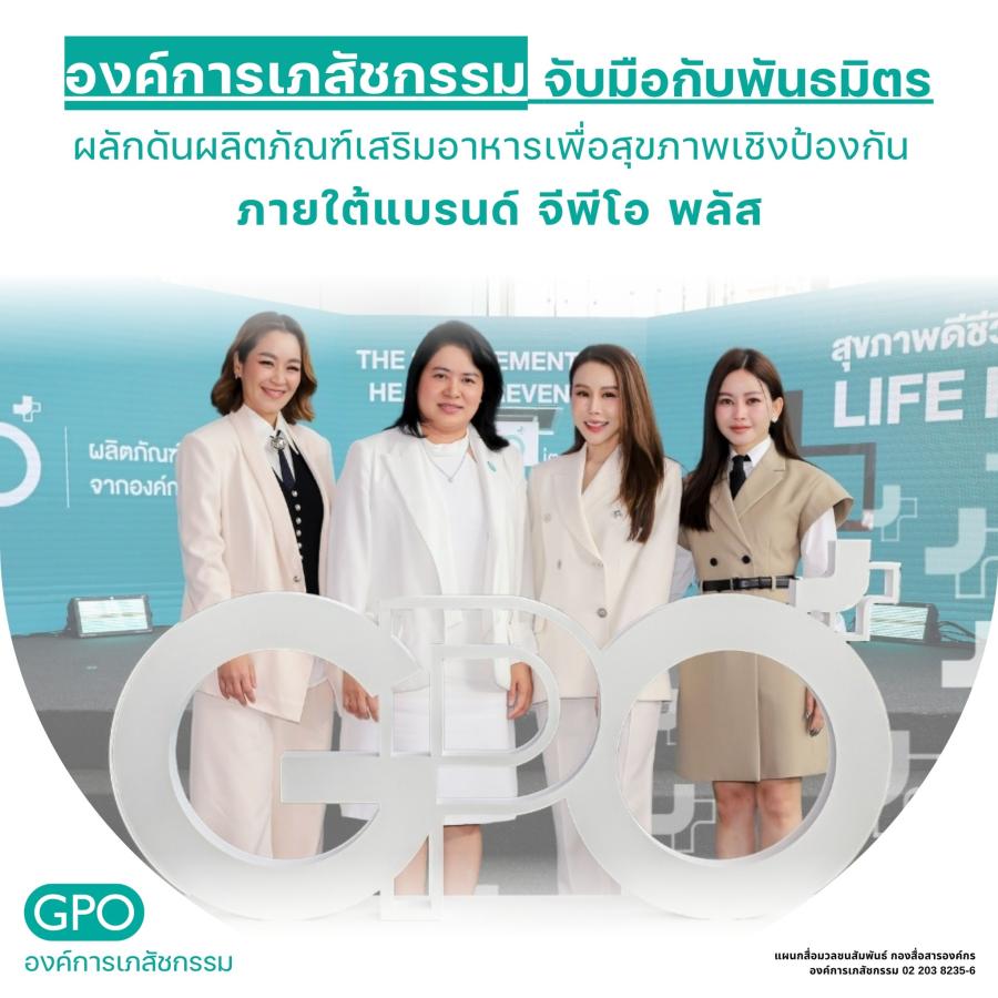 "องค์การเภสัชกรรม" จับมือ "Reborna Thailand" ปักหมุดสุขภาพดี เปิดตัว "GPO (จีพีโอ พลัส)" แบรนด์ผลิตภัณฑ์เสริมอาหาร ภายใต้แนวคิด "The Supplement for Health Prevention" วางเป้าหมายเป็นทางเลือกการดูแลสุขภาพของประชาชนในเชิงส่งเสริมสุขภาพ ราคาที่เข้าถึงได้ พร้อมเปิดตัวกลุ่มพันธมิตรทางธุรกิจ ณ Siam Paragon Next Tech x SCB ชั้น 4 สยามพารากอน