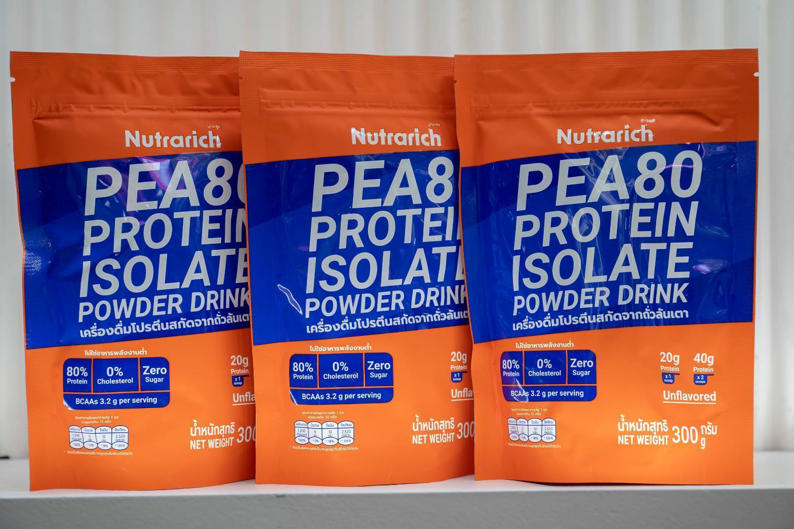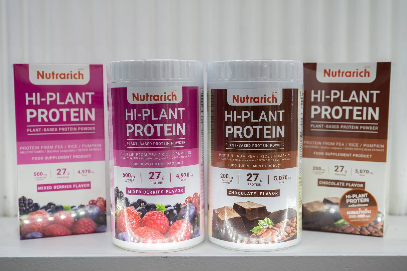 ปัจจุบันผลิตภัณฑ์ภายใต้แบรนด์ “นูทราริช” ประกอบด้วย 2 กลุ่ม ได้แก่ 1. PEA80 Protein Isolate โปรตีนสกัดจากถั่วลันเตา ทางเลือกสำหรับผู้รักสุขภาพ โดยให้โปรตีนสูงถึง 80% เหมาะสำหรับผู้ที่ต้องการเสริมโปรตีนในมื้ออาหาร และ 2. Hi-Plant Protein โปรตีนจากถั่วลันเตา ข้าว ฟักทอง มีให้เลือก 2 รสชาติ คือ มิกซ์เบอร์รี่ และช็อคโกแลต เสริมส่วนผสมที่มีประโยชน์ต่อสุขภาพอย่างพรีไบโอติก และโพรไบโอติก เพื่อสุขภาพลำไส้ และประโยชน์ที่ดีต่อสุขภาพ