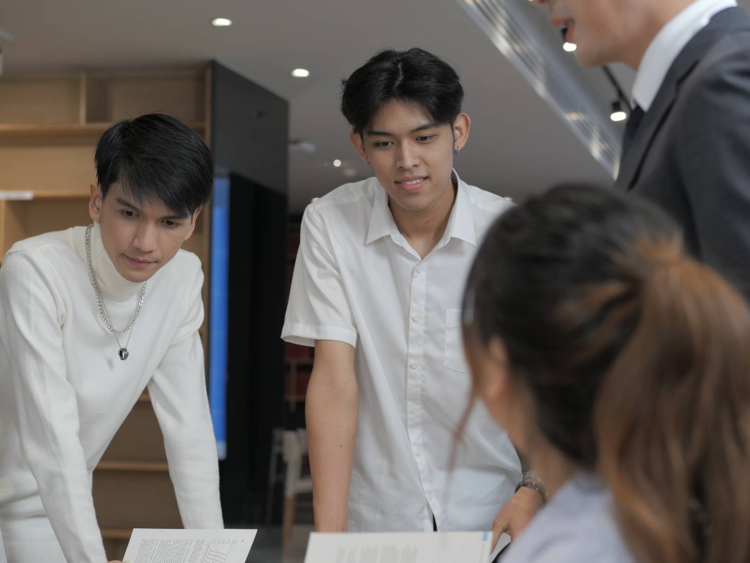นักศึกษาใช้ปัญญาประดิษฐ์ หรือ AI เพื่อค้นคว้าข้อมูลเกี่ยวกับโครงสร้างองค์กรและสภาพแวดล้อมทาง ประยุกต์ใช้ AI ช่วยวิเคราะห์และออกแบบโครงสร้างองค์กรให้เหมาะสมกับสถานการณ์จริง วิเคราะห์ปัจจัยภายนอกและภายในที่ส่งผลต่อองค์กร เพื่อหาแนวทางการปรับโครงสร้างให้มีประสิทธิภาพ
