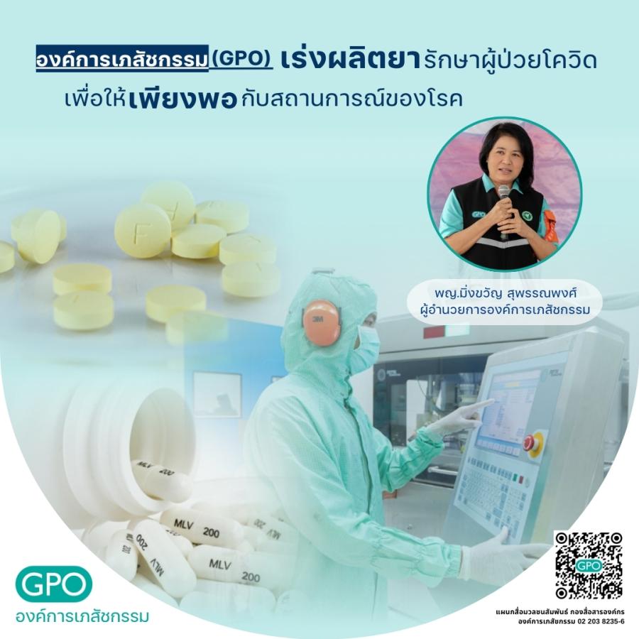 องค์การเภสัชกรรม(GPO) เร่งผลิต และสำรองยารักษาโควิด-19 คือ ยาฟาวิพิราเวียร์ (Favipiravir) และยาโมลนูพิราเวียร์ (Molnupiravir) จำนวนกว่า 5 ล้านเม็ด รองรับการระบาดโรคโควิด-19