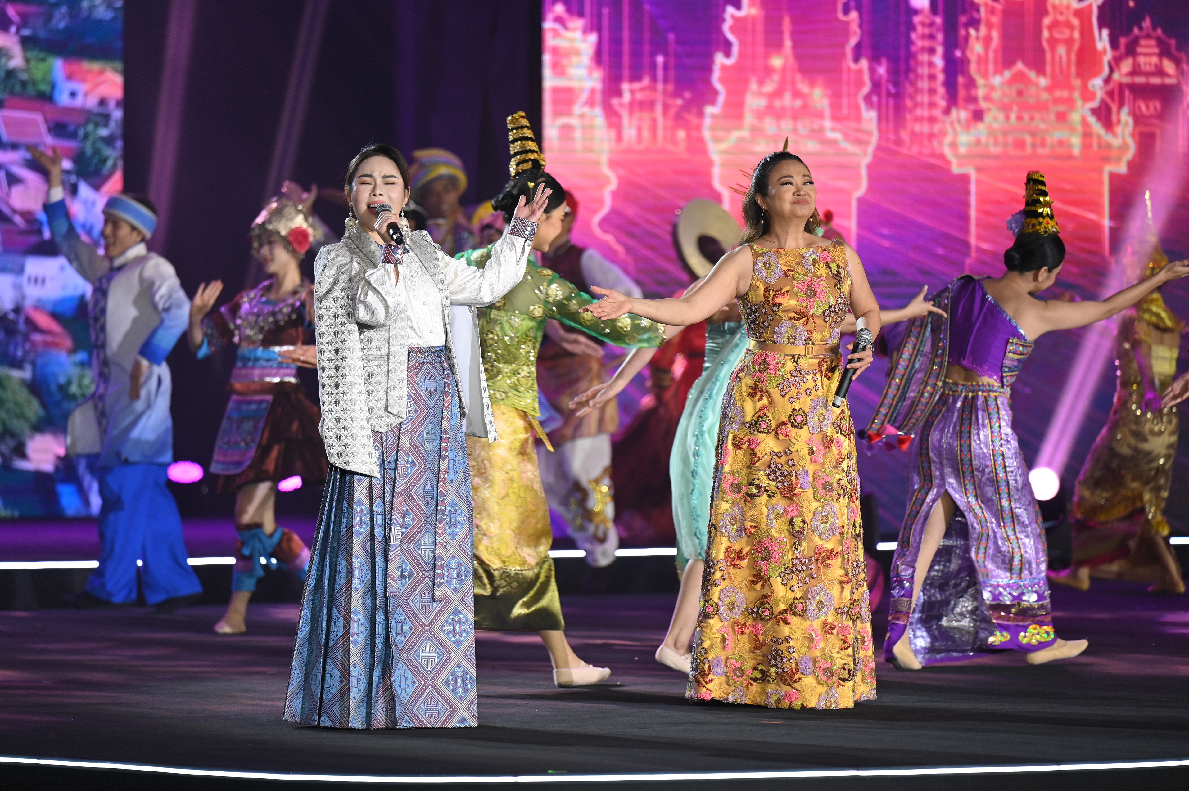 นอกจากนี้ ในพิธีเปิดยังมีการแสดงหลากหลายที่สื่อถึงวัฒนธรรมระหว่างสองประเทศ เริ่มด้วยการแสดงเปิด “บทเพลงแห่งเส้นทางสายไหม” (เพลงอาอีซานานียา เถียนมี่มี่ และสุขกันเถอะเรา) ขับร้องโดย เจนนิเฟอร์คิ้ม (ไทย) เหวย ฉิงฉิง (จีน) แสดงโดย SW SHOW และ มหาวิทยาลัยชนชาติกว่างซี พร้อมด้วยการแสดงต่างๆ อาทิ การแสดงนาฏศิลป์ “เส้นสายลายคราม” แสดงโดย สถาบันบัณฑิตพัฒนศิลป์ เพลงเมดเล่ย์จีน-อาเซียน ขับร้องโดย Joan Allan Anderson Sinapati (อินโดนีเซีย) หยาง เจี๋ย (จีน) Carmen Lee Jiawen (มาเลเซีย) Bui Huong Ngan (เวียดนาม) แสดงโดย SW SHOW การแสดงสร้างสรรค์ ”ทะเลหมู่ดาว” ขับร้องโดย หวง อิง (จีน) ต้าห์อู๋ พิทยา แซ่ฉั่ว (ไทย) แสดงโดย SW SHOW และ มหาวิทยาลัยชนชาติกว่างซี การพากย์ละครโทรทัศน์ “ธิดาแห่งขุนเขา” และสารคดี “แม่น้ำหลีเจียง” แสดงโดย นภัสวรรณ์ วัชรีวงศ์ ณ อยุธยา โอ๋ พิชาภพ ภัทรกูลนิยม ก่อนปิดท้ายด้วยการแสดงปิดในเพลง “โผนทะยาน” (Fly Over) สร้างความประทับใจให้กับทุกคนที่เข้าร่วมงาน