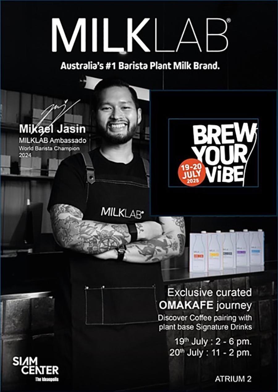 MILKLAB แบรนด์นมทางเลือกชั้นนำจากออสเตรเลียที่พัฒนาจากพืช เตรียมมอบประสบการณ์คาเฟ่สุดพิเศษให้กับคอกาแฟชาวไทย ในงาน “Brew Your Vibes” ในวันที่ 19–20 กรกฎาคม 2568 ณ บริเวณ Atrium 2 ศูนย์การค้าสยามเซ็นเตอร์
