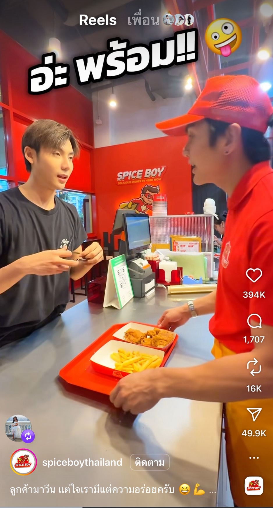 เป็นคลิปที่ถือว่าไวรัลมากๆ และคนเข้าไปดูคลิปนี้เรียกว่ายอดทะลุทะลวงแบบคาดไม่ถึง เมื่อ Spiceboythailand สุดยอดไก่รสชาติเกาหลีแท้ๆ แต่ราคาเอื้อมถึง จัดคอนเท้นต์เด็ดเอาใจวัยรุ่น และสายกินที่ชอบดูคอนเท้นต์เด็ดๆ