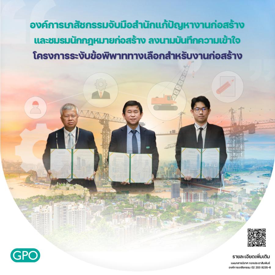 องค์การเภสัชกรรมจับมือสำนักแก้ปัญหางานก่อสร้างและชมรมนักกฎหมายก่อสร้าง ลงนามบันทึกความเข้าใจ โครงการระงับข้อพิพาททางเลือกสำหรับงานก่อสร้าง