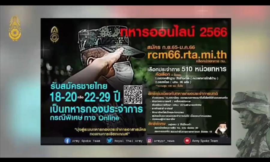 กองทัพบกเชิญชวนทหารกองเกินที่มีอายุ 18-20 ปี และ 22-29 ปี บริบูรณ์ ที่ผ่านการตรวจเลือกทหารกองเกินแล้ว สมัครใจเข้ารับราชการทหารกองประจำการ ได้ในหน่วยทหารที่เปิดรับสมัครทั่วประเทศหน่วยใดก็ได้ (กองทัพบก 510 หน่วยทั่วประเทศ) ตั้งแต่บัดนี้เป็นต้นไป จนถึงวันที่ 29 ม.ค. 2566