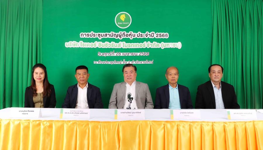 บริษัท ไรเดอร์ อินชัวรันส์ โบรกเกอร์ จำกัด(มหาชน) จัดประชุมสามัญผู้ถือหุ้น ประจำปี 2566 เพื่อรายงานผลดำเนินงาน ณ ห้องประชุมใหญ่ ชั้น 2 อาคารสำนักงานใหญ่ บริษัท ไรเดอร์ อินชัวรันส์ โบรกเกอร์ จำกัด(มหาชน) เมื่อวันศุกร์ ที่ 28 เมษายน 2566 โดยมี คุณปานวัฒน์ กูรมาภิรักษ์ ประธานเจ้าหน้าที่บริหาร เป็นประธานในการประชุม พร้อมด้วยคณะกรรมการบริษัท เข้าร่วมประชุมชี้แจงต่อผู้ถือหุ้น อย่างพร้อมเพรียงกัน