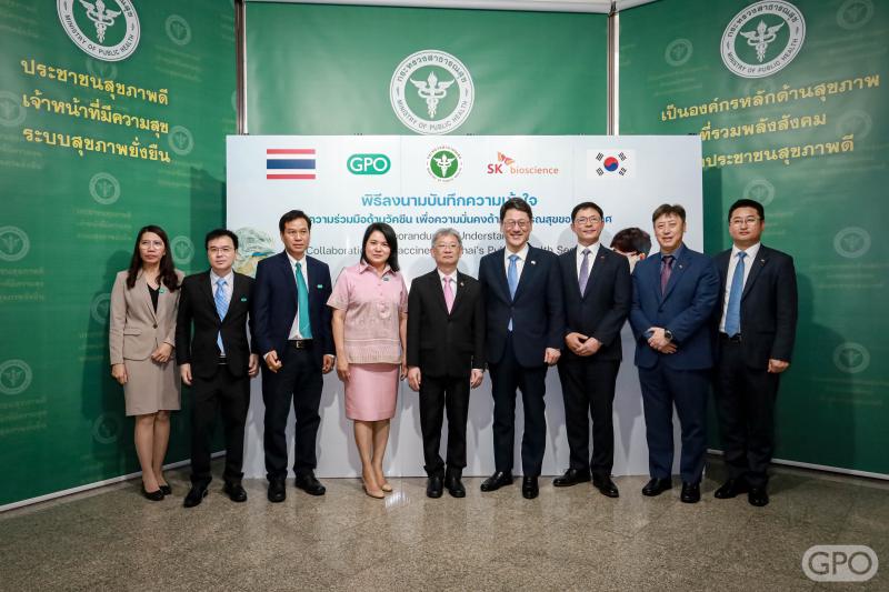 วันที่ 4 กรกฎาคม 2566 เวลา 14.00 น. ที่ห้องประชุมชัยนาทนเรนทร สำนักงานปลัดกระทรวงสาธารณสุข นายแพทย์โอภาส การย์กวินพงศ์ ปลัดกระทรวงสาธารณสุข และประธานกรรมการองค์การเภสัชกรรม เป็นประธานการลงนามบันทึกความเข้าใจระหว่างองค์การเภสัชกรรม โดย แพทย์หญิงมิ่งขวัญ สุพรรณพงศ์ ผู้อำนวยการองค์การเภสัชกรรม กับ บริษัท SK bioscience Co. Ltd. สาธารณรัฐเกาหลี โดย Mr. Ahn Jae YongCEO บริษัท SK bioscience Co. Ltd และ Mr. Jeon Joyoung อุปทูตรักษาสถานเอกอัคราชทูต สาธารณรัฐเกาหลีประจำ ประเทศไทย เป็นสักขีพยาน